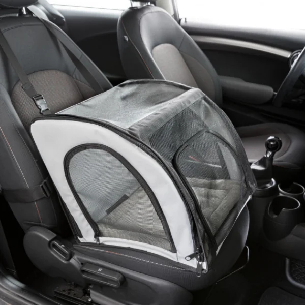 - Instalación sin esfuerzo: tiras seguras y ranuras para cinturón que mantienen a tu mascota en su lugar.