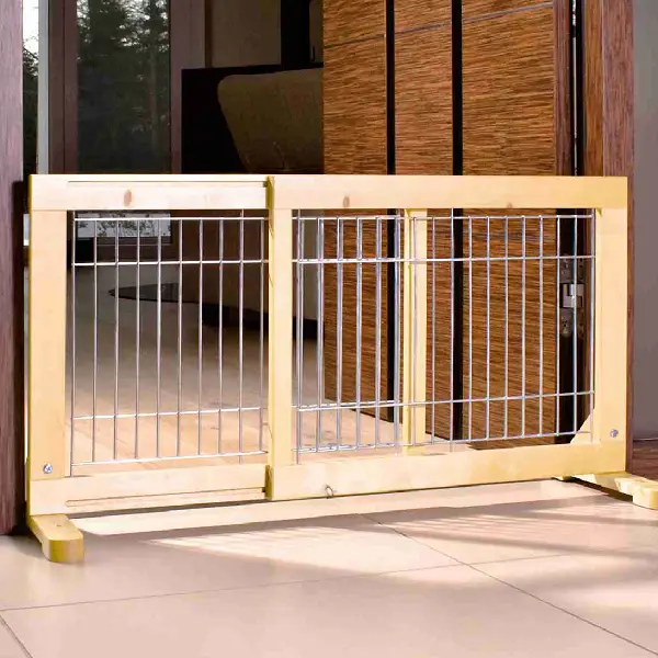 Hecha de madera de pino y con un diseño ajustable, esta barrera para perros pequeños combina seguridad, comodidad y estilo.