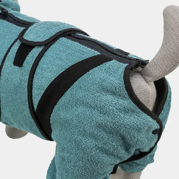 - Máxima absorción de humedad: el tejido de rizo absorbe eficientemente el agua y la suciedad, manteniendo a tu perro seco y limpio.