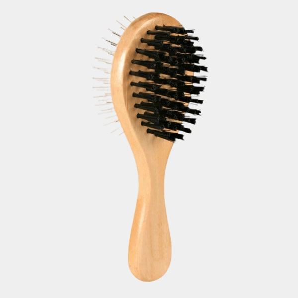 • Doble funcionalidad: cerdas de metal para desenredar y aflojar el pelo muerto del subpelo, y cerdas de nylon para un acabado suave y brillante.