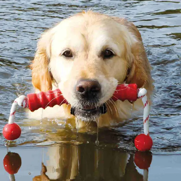 ¿Tu perro necesita más ejercicio y estimulación durante el juego? Entonces nuestro juguete flotante para perros es la solución ideal. Diseñado para proporcionar horas de entretenimiento activo, este juguete motivador es perfecto para juegos de lanzar y tirar, tanto en tierra como en el agua. Desarrollado por el reconocido adiestrador canino Prof. Ekard Lind, este juguete asegura un agarre cómodo y seguro para ambos extremos de la cuerda, facilitando la interacción entre tú y tu mascota.