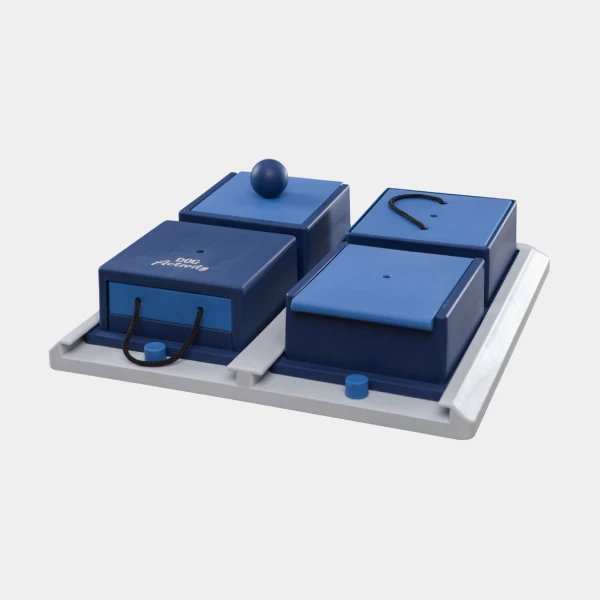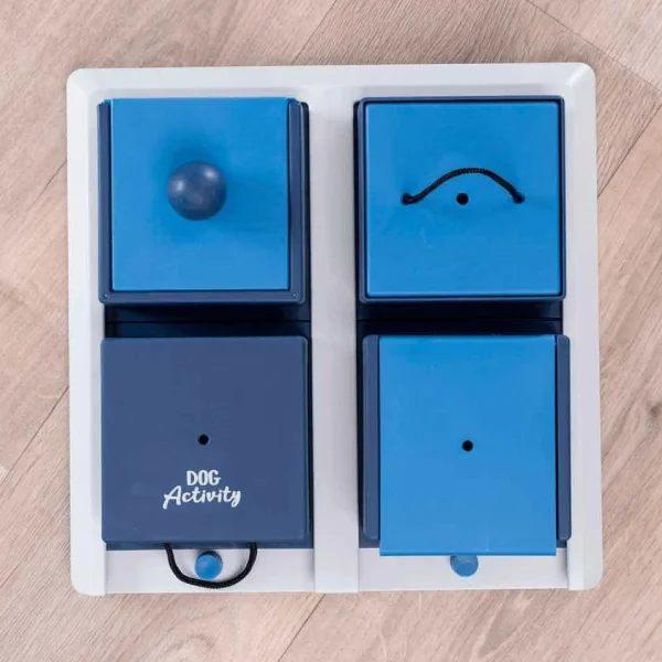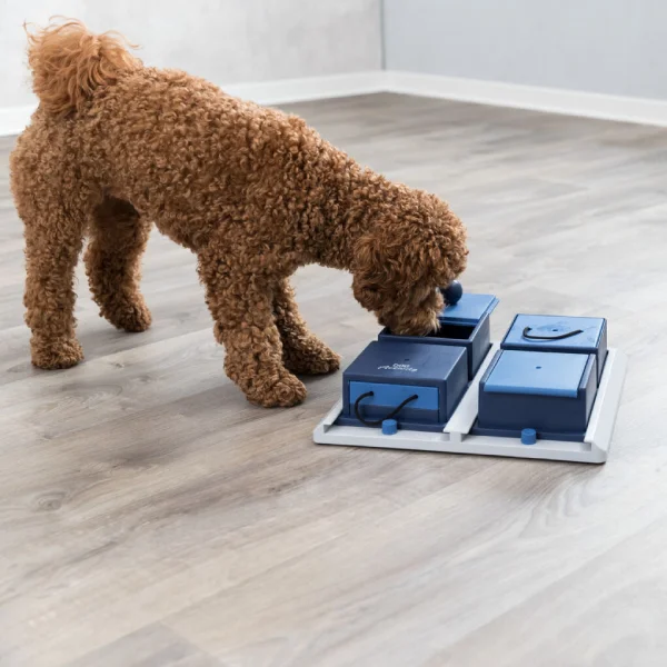 • Tablero de juego con 4 elementos variables: este innovador juguete incluye cuatro módulos diferentes que se pueden organizar de múltiples maneras, manteniendo a tu perro constantemente interesado y motivado.
