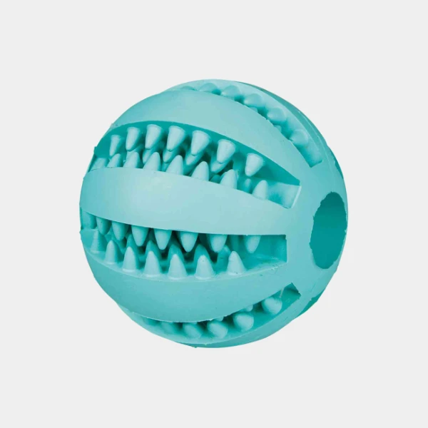 - Sabor a menta: la pelota tiene un aroma fresco a menta que atrae a los perros y ayuda a mantener su aliento fresco.