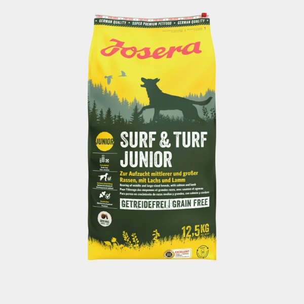 Con sus ingredientes premium como el cordero y el salmón, nuestro pienso sin cereales para perros Josera Junior Surf&Turf proporciona todos los nutrientes necesarios para que tu pequeño tenga un buen desarrollo.